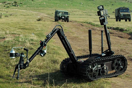 美國研發(fā)出的魔爪機器人就是這樣一款戰(zhàn)爭機器人。主要是為了執(zhí)行清除簡易爆炸裝置和地雷的高危行動,所以在底盤之上配備的是機器人手臂,配備機器人手臂的版本在把手臂收起時長86.4厘米,寬57.2厘米,高27.9厘米,離地距離為7厘米。