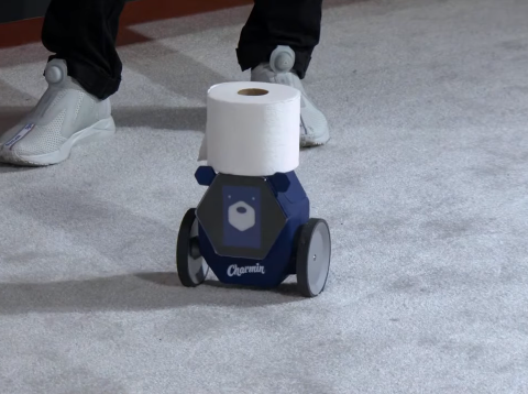 這是一個衛(wèi)生紙生產商在CES上提出的一系列基于技術的浴室解決方案。該公司推出的這款自平衡的機器人,它可以連接到用戶的手機,并且可以幫助用戶化解無廁紙的尷尬情況,在他們最需要時提供新的卷紙。