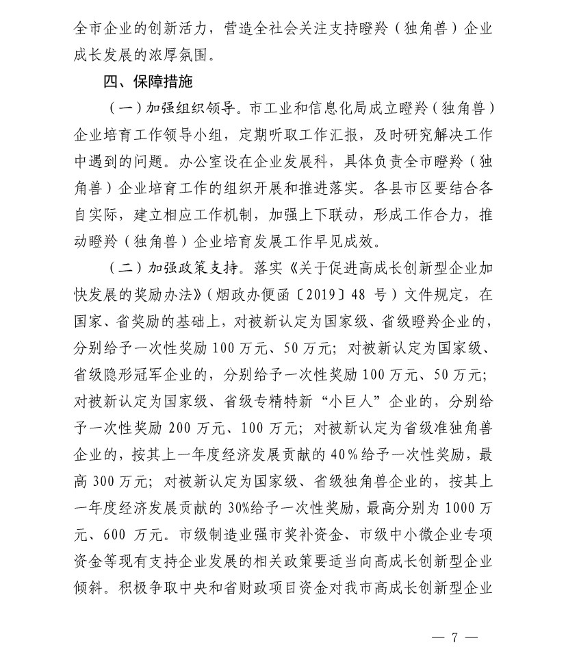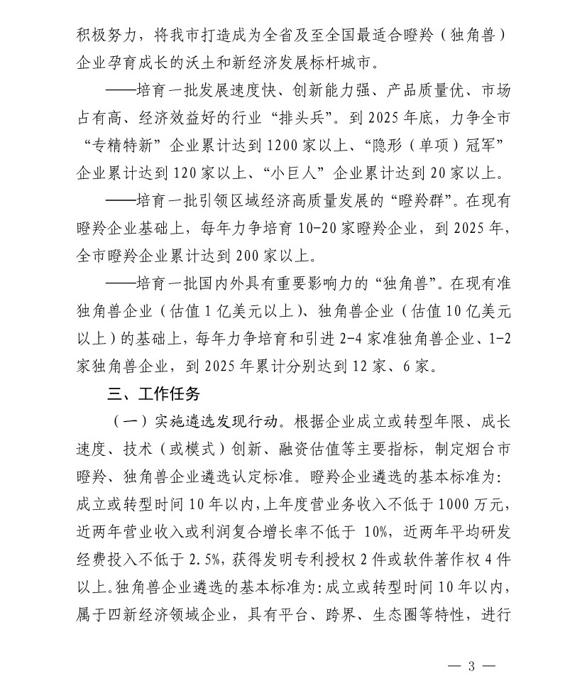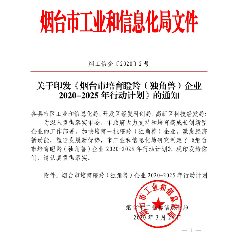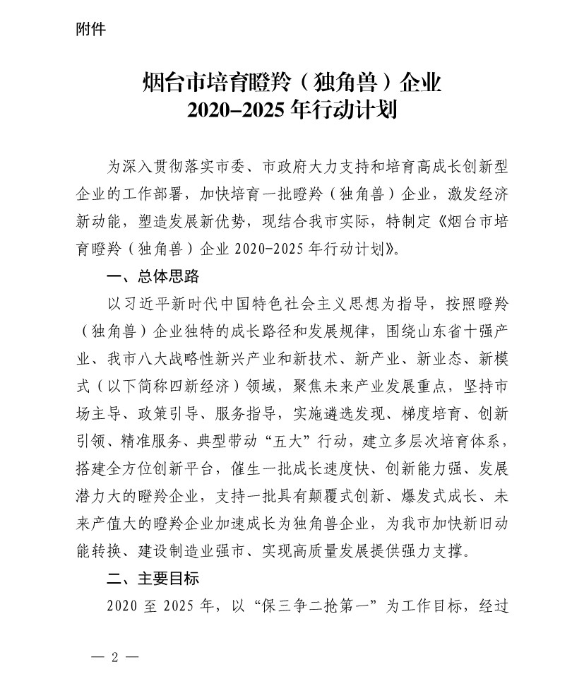 煙臺(tái)市培育瞪羚(獨(dú)角獸)企業(yè) 2020-2025行動(dòng)計(jì)劃
