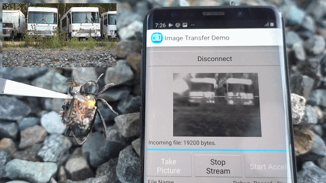 研究人員還利用他們的攝像系統(tǒng),設(shè)計了世界上最小的具有無線視覺的電力自主機器人。這個昆蟲大小的機器人利用振動來移動,消耗的能量幾乎與低功耗藍牙無線電所需的能量相當(dāng)。