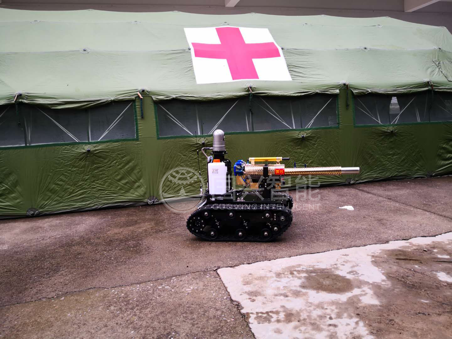 山東國興智能科技股份有限公司在疫情期間,危急時刻,向軍醫(yī)院武漢前線捐贈消殺機器人,同時積極協(xié)助現(xiàn)場專家開展應(yīng)急科研公關(guān),有力的支持了武漢前線。