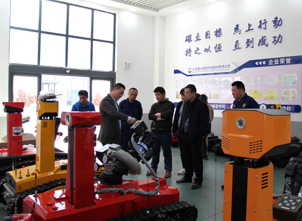 公司擁有科研生產用房20000余平方米,測試實驗基地1800平方米,現有員工100多人,其中兼職教授8人、博士6人、碩士12人。公司研發(fā)實力雄厚,核心研發(fā)團隊成員有國家特聘專家3人;“泰山學者”1人;“新世紀人才”等;公司是中國特種機器人產業(yè)聯(lián)盟、中國機器人聯(lián)盟和山東省機器人研究會理事單位,并加入了中國消防協(xié)會。目前已經獲得國家級高新技術企業(yè)證書、國家級科技型中小企業(yè)稱號;公司已獲得山東省“專精特新”中小企業(yè)榮譽稱號,公司研發(fā)中心被評定為省級一企一技術研發(fā)中心榮譽稱號。國興智能單體智能裝備防爆消防機器人系列產品榮獲山東省首臺套技術裝備稱號。