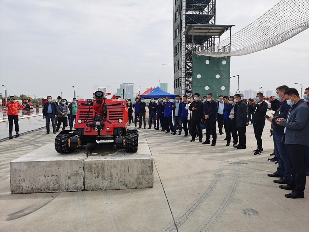 為了充分展示煙臺市化工行業(yè)應(yīng)急救援新裝備、新技術(shù),進(jìn)一步推動應(yīng)急救援及保障能力建設(shè)。10月14日,煙臺市政府安委會辦公室在煙臺開發(fā)區(qū)八角街道貴陽大街八角消防救援站組織滅火機(jī)器人等裝備現(xiàn)場展示觀摩會議,山東國興智能科技股份有限公司作為煙臺市本土應(yīng)急救援類機(jī)器人研發(fā)、生產(chǎn)、制造企業(yè),攜四驅(qū)柴油滅火機(jī)器人、防爆消防滅火偵察機(jī)器人、舉升排煙機(jī)器人、消防排澇機(jī)器人、礦用消防滅火偵察機(jī)器人等消防機(jī)器人系列產(chǎn)品參加此次活動。