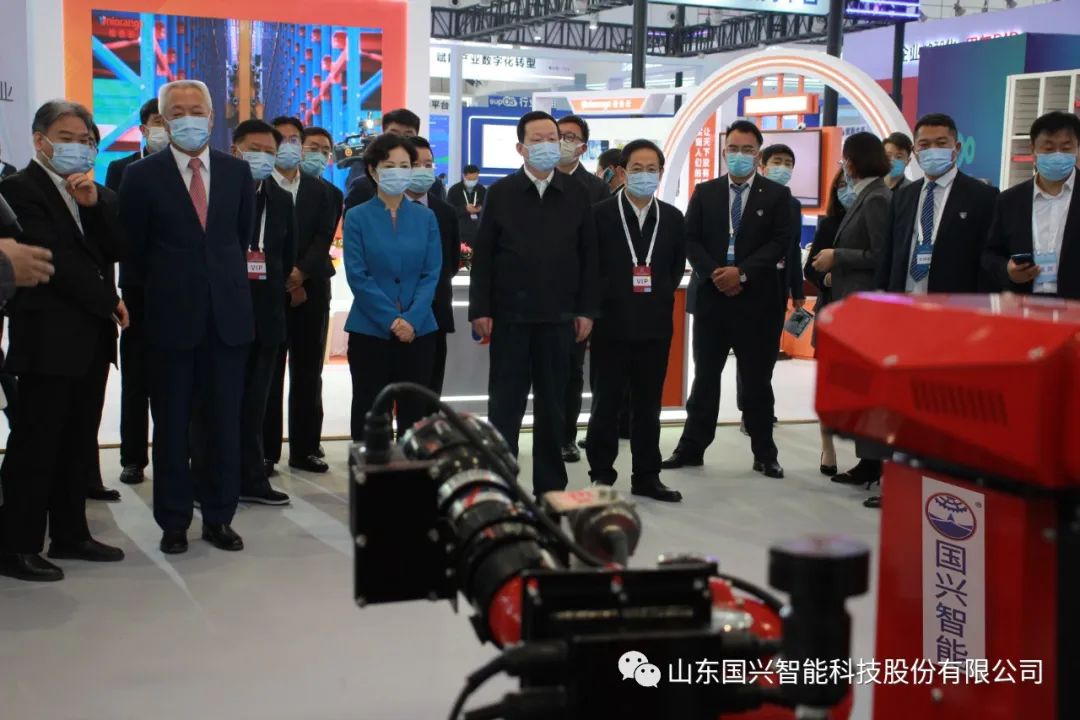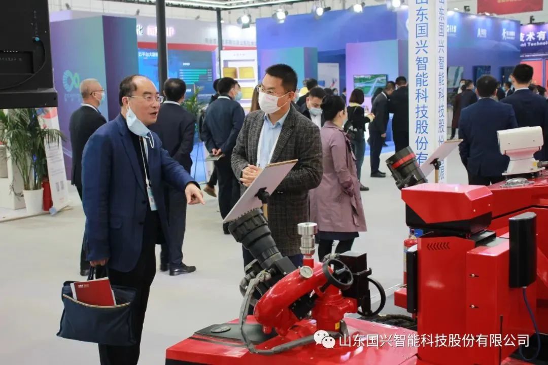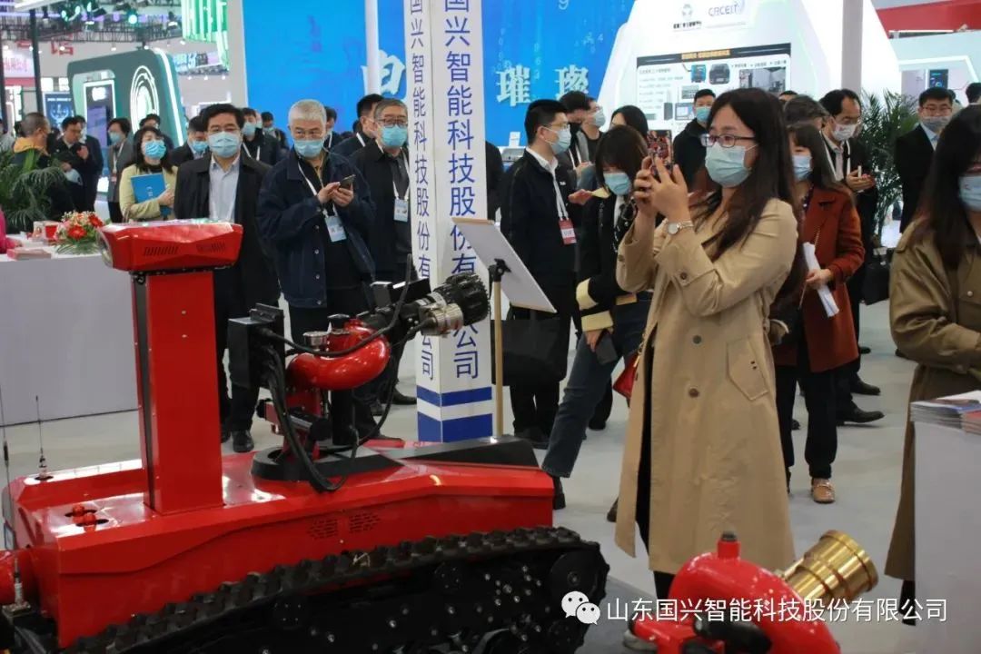 在8日當(dāng)天,山東省工業(yè)和信息化廳黨組書記、廳長張海波來到國興智能展位前參觀指導(dǎo);9日上午,山東省委副書記、省長周乃翔,工業(yè)和信息化部副部長徐曉蘭,山東省人民政府副省長凌文,山東省工業(yè)和信息化廳黨組書記、廳長張海波等領(lǐng)導(dǎo)來到國興智能展位前,聽取了國興智能發(fā)展歷史、產(chǎn)品構(gòu)成、產(chǎn)品應(yīng)用、技術(shù)持續(xù)創(chuàng)新等方面的情況,并且向領(lǐng)導(dǎo)進(jìn)行了現(xiàn)場產(chǎn)品功能演示,展示了國興智能在消防機(jī)器人方面的科技創(chuàng)新、技術(shù)革新成果,得到了現(xiàn)場領(lǐng)導(dǎo)高度認(rèn)可與充分肯定。此外,國興智能消防機(jī)器人也吸引了新聞媒體的廣泛關(guān)注,包括中央電視臺、山東電視臺在內(nèi)的多家媒體走到國興智能的展位前采訪報(bào)道。