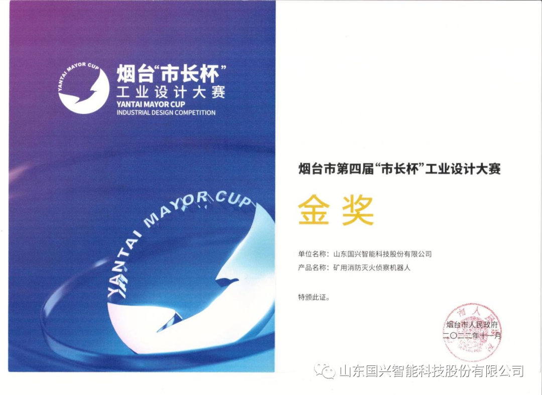 近日,由工業(yè)和信息化部、山東省人民政府共同主辦,山東省工業(yè)和信息化廳、煙臺(tái)市人民政府、中國(guó)工業(yè)設(shè)計(jì)協(xié)會(huì)和山東省工業(yè)設(shè)計(jì)研究院承辦的2022世界工業(yè)設(shè)計(jì)大會(huì)在煙臺(tái)舉行。在會(huì)間舉行的煙臺(tái)市第四屆“市長(zhǎng)杯”工業(yè)設(shè)計(jì)大賽獎(jiǎng)?lì)C獎(jiǎng)典禮上,山東國(guó)興智能科技股份有限公司自主研發(fā)的礦用消防滅火偵察機(jī)器人榮獲金獎(jiǎng)。在此之前,礦用消防滅火偵察機(jī)器人也獲得了山東省第四屆“省長(zhǎng)杯”工業(yè)設(shè)計(jì)大賽銀獎(jiǎng),這也充分證明國(guó)興智能在產(chǎn)品技術(shù)性能創(chuàng)新等方面的實(shí)力。