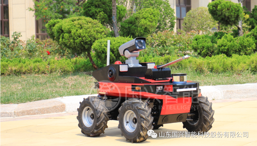 山東國興智能科技股份有限公司推出的輪式防御偵察機(jī)器人—Smurf-WT1000,搭載聲紋識(shí)別、視覺識(shí)別等功能,可長時(shí)間續(xù)航,適用于庭院、廠區(qū)、園區(qū)、公園等室內(nèi)、戶外場(chǎng)景。