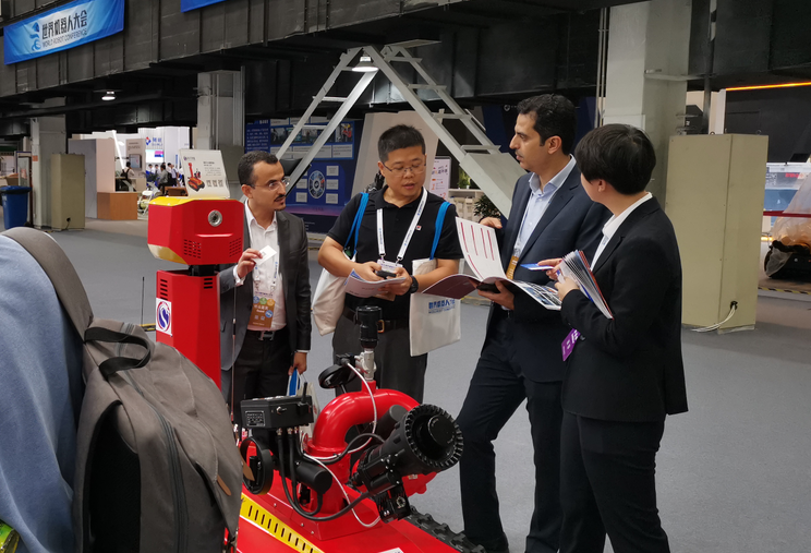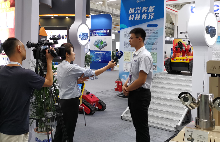 8月22日,在2019世界機(jī)器人大會現(xiàn)場,國興智能在新品推介會現(xiàn)場嶄露頭角,項目路演現(xiàn)場觀者如云,并對我們的產(chǎn)品產(chǎn)生濃厚的興趣,吸引了廣大國內(nèi)外觀眾的眼球,以及應(yīng)急產(chǎn)業(yè)處領(lǐng)導(dǎo)們的關(guān)注。